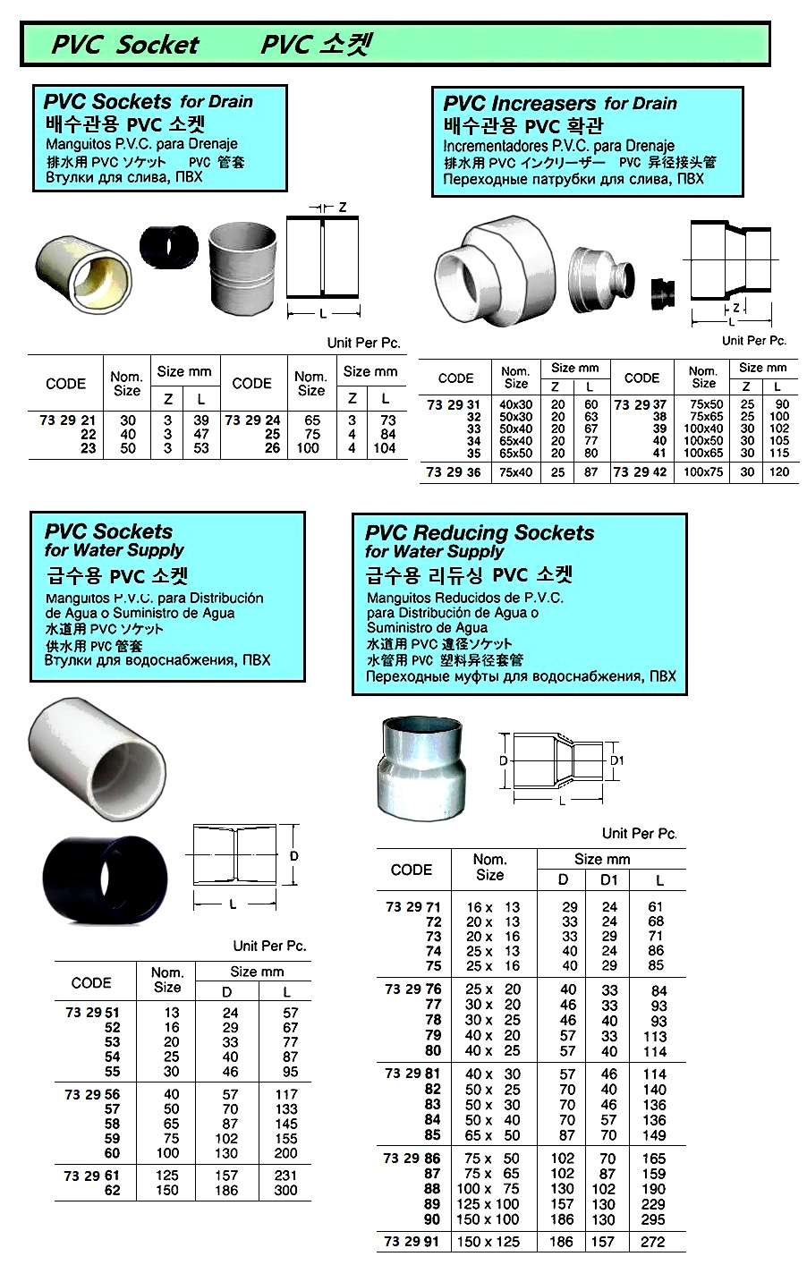 PVC ¼ÒÄÏ, ±Þ¼ö¿ë, È®°ü , PVC SOCKETS FOR WATER SUPPLY, SIZE 25
